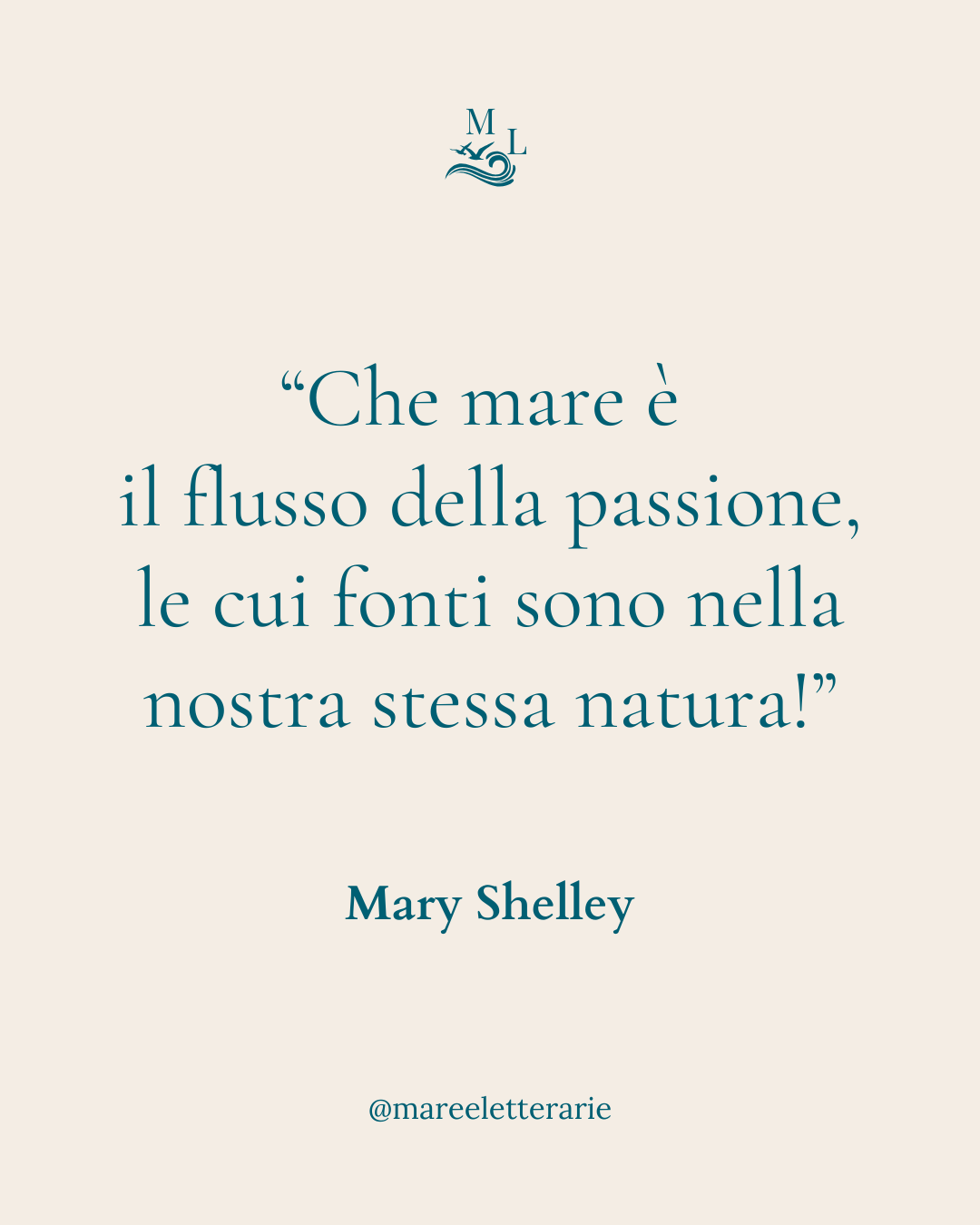 A soli diciannove anni, Mary Shelley diede vita a Frankenstein, capolavoro che unisce scienza e mito. La sua immagine del mare come flusso della passione riflette la potenza delle emozioni: un oceano interiore che nasce dalla nostra stessa natura.