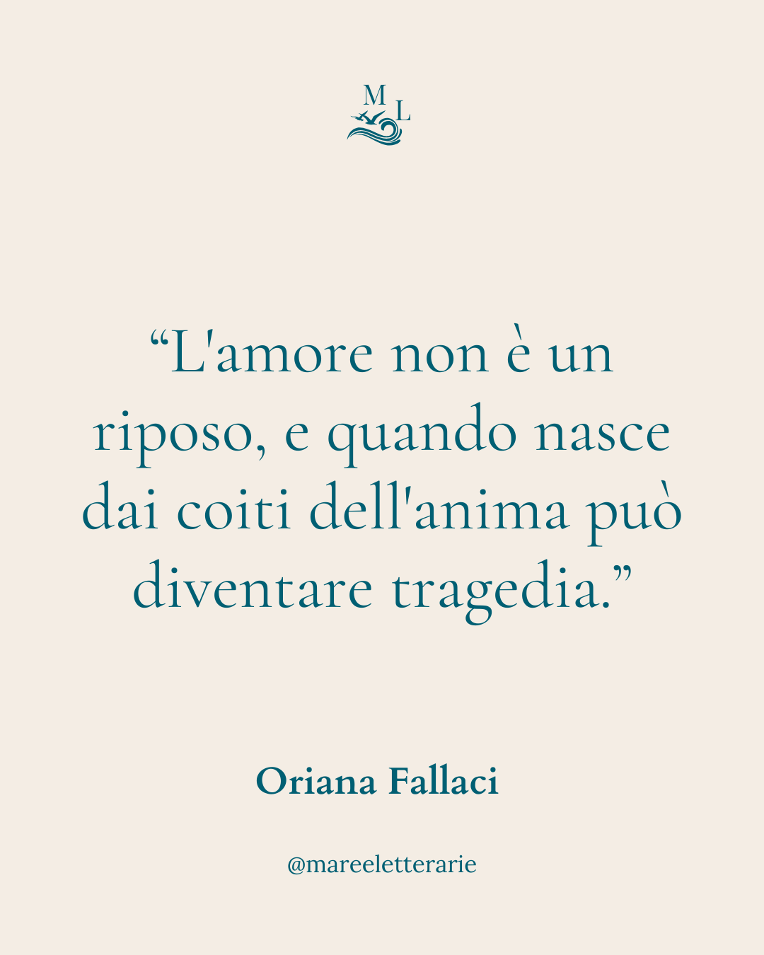 Con la sua voce appassionata e indomita, Fallaci ha raccontato l’amore come un campo di battaglia, mai come rifugio. Amare significa esporsi, rischiare, vivere senza difese. L’amore è forza e ferita, creazione e rovina, ma sempre, irriducibilmente, vita.