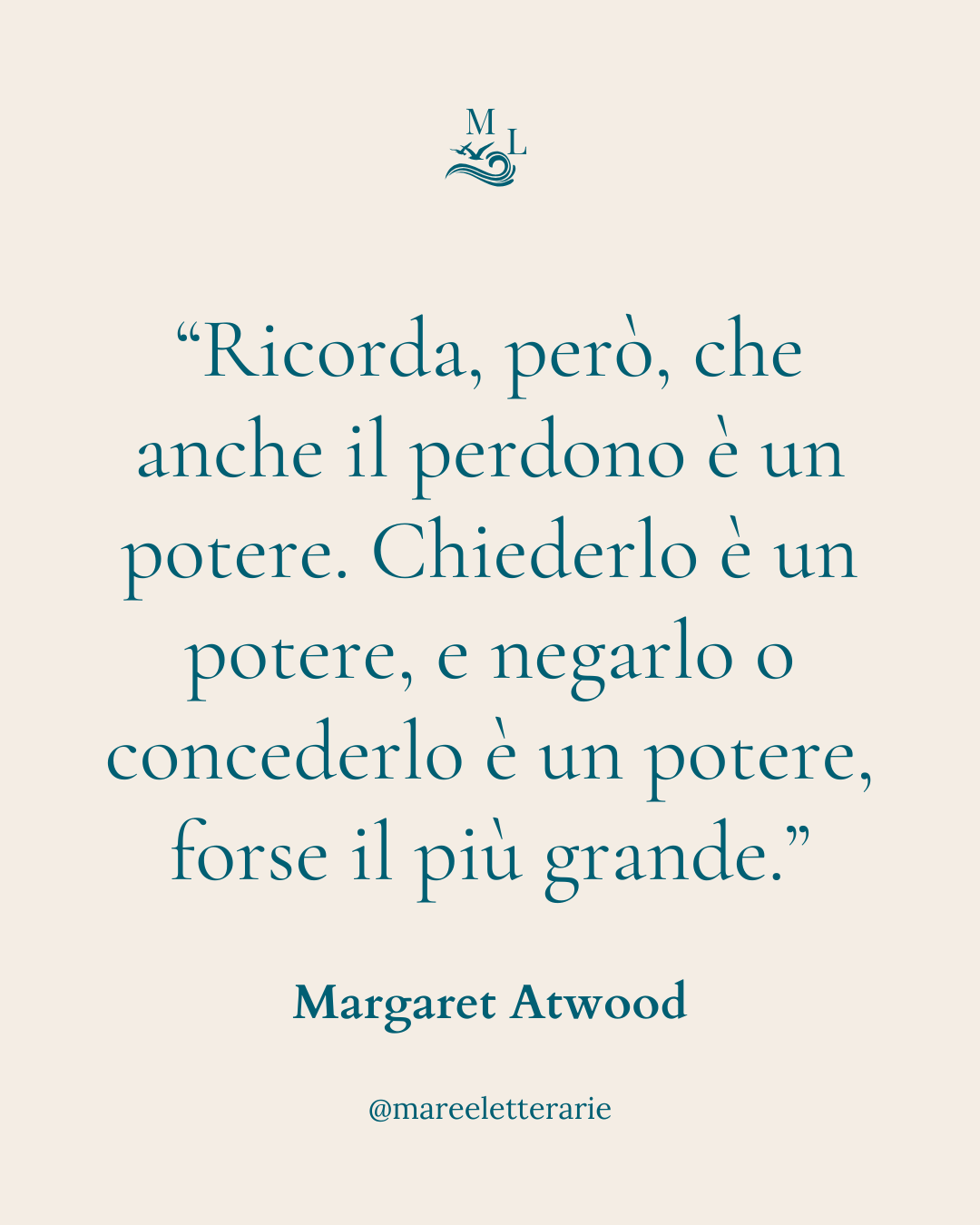 Nei mondi inquieti di Atwood il potere vive anche nei gesti silenziosi, negli atti interiori che cambiano la direzione di una vita. Il perdono è un potere discreto, ma capace di liberare o imprigionare, e proprio per questo richiede coraggio più della vendetta.