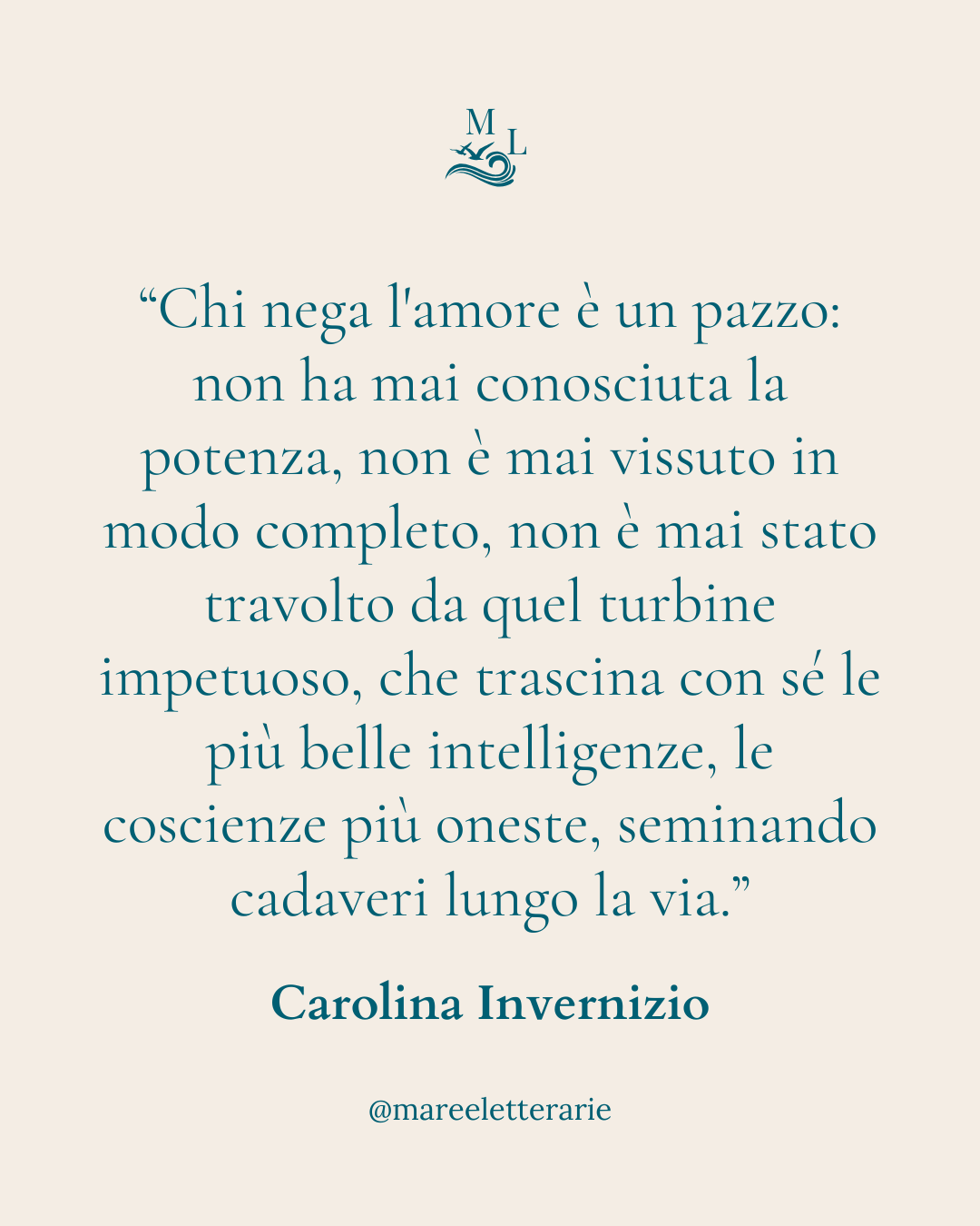 L’amore non è un sentimento gentile, ma un turbine che investe anche le anime più oneste e le intelligenze più limpide. Eppure, senza quel rischio e senza quella vertigine, la vita resterebbe solo un’esistenza a metà.