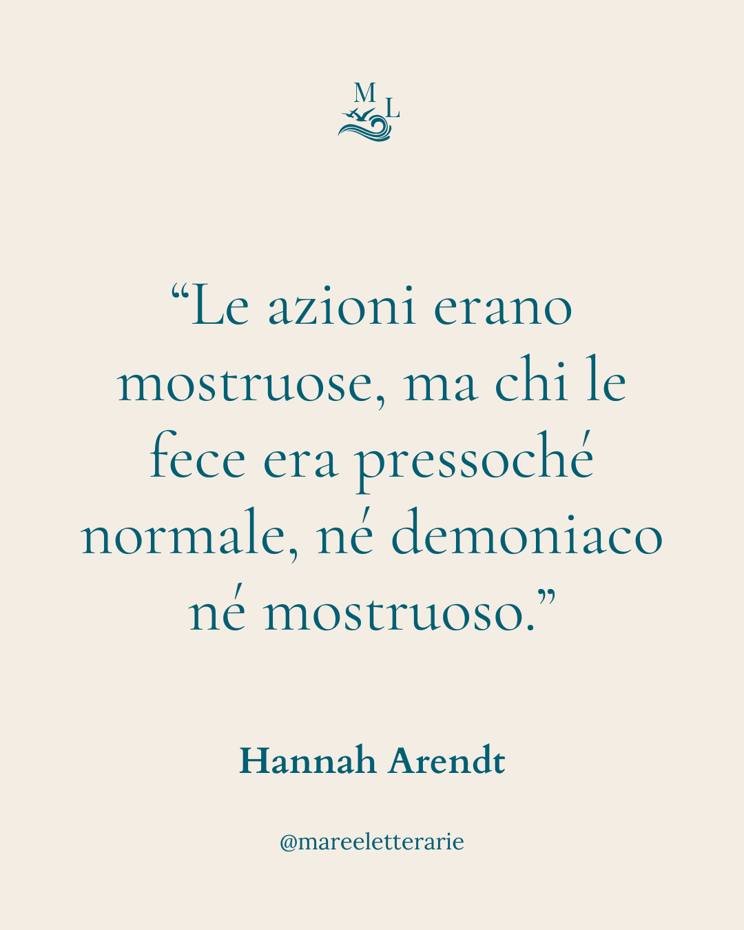 Hannah Arendt smaschera la banalità del male: l’orrore non nasce dai mostri, ma dall’obbedienza cieca, dal pensiero sospeso. Le sue parole, lucide e necessarie, ci ricordano quanto fragile sia la linea che separa il bene dal male e quanto urgente resti la responsabilità individuale.